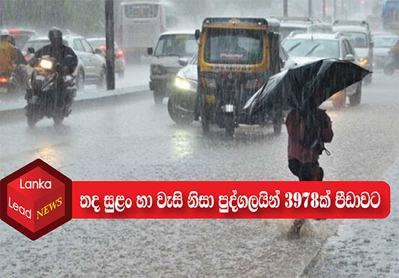 දිස්ත්රික්ක 11ක ඇතිවී තිබෙන තද සුළං හා තද වර්ෂා තත්ත්වය නිසා පවුල් 900කට අයත් පුද්ගලයෝ 3978 දෙනෙක් පීඩාවට පත්ව සිටිති.