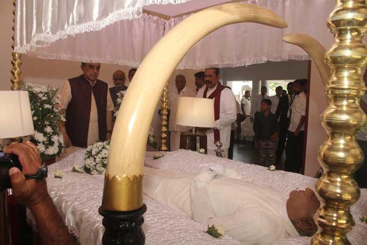 චන්ද්රා රාජපක්ෂ මහතාගේ දේහය මැදමුලන නිවසේ තැන්පත් කර තිබේ. ස්වාමි මහතා පිළිගැනීමට නාමල් රාජපක්ෂ මහතා කටයුතු කළේය.