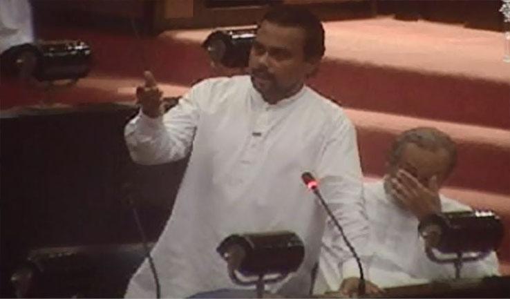 රනිල් වික්රමසිංහ මහත්තයාට එරෙහි විශ්වාසභංගයේ දී ‘දෙන්නම් බැටේ‘ කියලා හිටපු මන්ත්රීවරු ටිකත් ඔන්න කුට්ටිය ලැබුණාම හීලෑ වුණා. එහෙම මන්ත්රීවරු ටිකක් කුට්ටිය දීලා හීලෑ කර ගෙන පාර්ලිමේන්තුවේ බහුතර බලය හදා ගෙන රටක් පාලනය කරන්න බැහැ. ඒ නිසා අපි කියන්නේ ‘පළාත් සභා මැතිවරණය වහාම පවත්වන්න‘ කියලයි. ‘ඊට පවතින බාධාවන් වහා ඉවත් කරන්න‘ කියලයි. දැන් මේ ආණ්ඩුව කරන්නේ පළාත් සභා මැතිවරණය පැවැත්වීමට තිබෙන බාධාවන් වවාගෙන කෑම. ඒකෙන් ජනතාවගේ ප්රජාතන්ත්රවාදී අයිතියටයි බාධා ඇති වෙන්නේ. ශ්රේෂ්ඨාධිකරණය පවා පළාත් සභා මැතිවරණය කල් නොදැමිය යුතුයි කියා තීන්දුවක් දී තිබෙනවා. එහෙම තීන්දුවක් තිබියදී තමයි මේ ආණ්ඩුව ජනතාවගේ ඡන්ද බලයත් සමග සෙල්ලම් කරමින් ඉන්නේ. දැන් බලන්න, මේ පළාත් සභා හා පළාත් පාලන ඇමතිවරයා වැඩ කරන්නේ ජනාධිපතිවරයාට උවමනා විදිහට. තවත් ඇමැතිවරු කටයුතු කරනවා අගමැතිට උවමනා විදිහට. අද ජනාධිපති එකක් කියනවා, අගමැති තව එකක් කියනවා. මේ දෙන්නාටම විරුද්ධ දෙයක් මුදල් ඇමති කියනවා. එතකොට විදේශ ආයෝජකයන්, විදෙස්ගත ශ්රී ලාංකිකයන් සත පහක් අරන් ඒවිද? අද යමක්කමක් තිබෙන මිනිස්සු තමන්ගේ දේපළ ටික විකුණලා රට යන එකයි සිදුවෙමින් පවතින්නේ. අද රට එතැනට වැටිලා ඉවරයි. අද ස්වදේශික ව්යාපාරිකයාට විශාල බදු බරක් පටවලා. ඒ බදු බර දරාගන්න බැරුව අද ව්යාපාර වැහෙනවා.