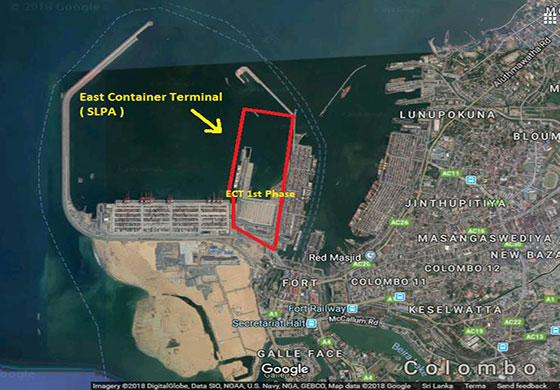 මේ පහළ රූපයේ මාර්ක් කරලා තියෙන්නෙ එහෙව් කොළඹ වරායෙ නැගෙනහිර බහළුම් පර්යන්තයයි.. මෙය මුළුමනින්ම අයත් වන්නේ ශ්රී ලංකා වරාය අධිකාරියට සහ රජයට.. මේ පර්යන්තය මෙහෙයුම් සඳහා 2016 වසරේ සිට අවසර ලැබෙනවා දකුණු කොළඹ වරාය සංවර්ධන ව්යාපෘතියේ එකඟතා අනුකූලව.. (ඒ මේ සමස්ථ ව්යාපෘතිය ණයක් නොව චීනය සහ ශ්රී ලංකාව එක්ව කල ව්යාපෘතියක් නිසා..)