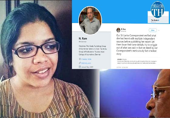 හින්දු පුවත්පතේ කොළඹ වාර්තාකාරිණියට විවිධ චෝදනා නැගීම මාධ්ය නිදහසට තර්ජනයක් යයි නිදහස් මාධ්ය ව්යාපාරය පවසයි.