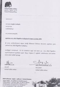 රට තුළ දැනට උද්ගතව ඇති දේශපාලනමය අර්බුදකාරී තත්ත්නය තුළ රනිල් වික්රමසිංහ මහතාගේ වරප්රසාද ආරක්ෂා කර දෙන ලෙස මෙම ලිපිය මගින් අතිගරු ජනාධිපතිතුමන්ගෙන් ඉල්ලීමක් කර තිබේ.