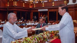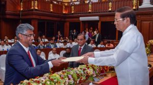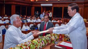 ජනාධිපති මෛත්රිපාල සිරිසේන මහතා ඉදිරියේ නව කැබිනට් මණ්ඩලය මේ වන විට දිවුරුම් දීම ජනාධිපති ලේකම් කාර්යාලයේ සිදුවෙමින් පවතී.