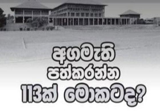 අද දවසේ මාතෘකාව බවට පත්ව ඇති 113 යනු කිසිසේත්ම තීරණාත්මක හෝ අදාල මාතෘකාවක් නොවේ. මේ ඉලක්කම 113 වී ඇත්තේ පාර්ලිමේන්තු මන්ත්රීධුර සංඛ්යාව 225ක් නිසාවෙනි. ඒ අනුව පාර්ලිමේන්තුවේ බහුතරය වන්නේ 113ය යන ගණිතමය පිළිගැනීම මත පිහිටා 113 යනු අද දවසේ දනන් තුඩග රැව්දෙන මාතෘකාවද, ප්රශ්නයද අභියෝගයද, තර්කයද බවට පත්ව තිබේ.