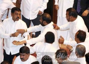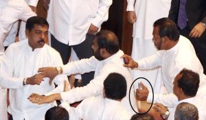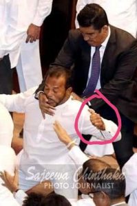 පර්ලිමේන්තුෙවේ අද උදේ ඇතිවූ ගැටුම්කාරී තත්ත්වය තුළ පාලිත තෙවරප්පෙරුම මන්ත්රීවරයා විසින් පිහියක් වැනීම නිසා දිලුම් අමුණුගම මන්ත්රීවරයාට තුවාල සිදුවූ බව ජයන්ත සමරවිර මහතා පවසයි.
