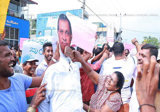 ව්යවස්ථා විරෝධීව හා එජාපයට පක්ෂග්රාහීව කටයුතු කරන කථානායක කරු ජයසූරියට එරෙහිව රට පුරා පැවැත්වෙන විරෝධතා මාලාවේ තවත් විරෝධතාවක් අද (16) කඩුවෙල නගර මද්්යයේ පැවැත්විණි.