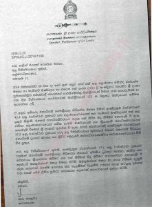 එම සාවද්ය බවට ප්රචාරය වන ලිපිය කථානායක, ශ්රී ලංකා පාර්ලිමේන්තුව යන ලිපි ශීර්ෂය යටතේ කථානායක කරු ජයසූරිය මහතාගේ අත්සනින් යුතුව දක්වා තිබේ.