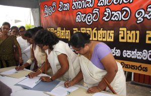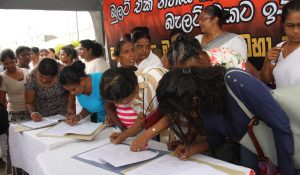 “අපි මේ රටේ මව්වරුන් විදියට මේ පෙත්සමට අත්සන් තබලා ඉල්ලා සිටින්නේ අපේ ඡන්ද අයිතියයි. අද මේ රටට සතුරු දෙස් – විදෙස් බලවේග මේ රට විනාශකාරී මාවතකට ඇදගෙන යන්න හදනවා. ජනතාව එකිනෙකා ගහමරා ගන්නා තත්වයක් ඇති කරලා මේ රට ලේ විලක් කරන්නයි ඔවුන්ගේ සූදානම. මේ කුමන්ත්රණය නතර කරන්න පුළුවන් වෙන්නේ පවතින විකෘති පාර්ලිමේන්තුව වෙනුවට ප්රකෘතිමත් පාර්ලිමේන්තුවක් හදාගත්තොත් පමණයි. ඒකට අපට අපේ ඡන්ද අයිතිය උවමනායි.