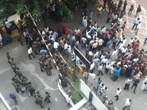 නිවාස අධිකාරියේ සාමාන්යාධිකාරිවරිය ඇතුළු ඉහළ නිලධාරීන්ට අධිකාරියෙන් පිටතට පැමිණිමට ඉඩ නොදී ඔවුහු එම ස්ථානයේ රැකවල්ලාගෙන සිටිති.