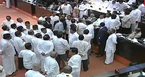 මේ අතර අගමැතිවරයා විසින් අද දිනයේ පාර්ලිමේන්තුව ඇමතීමේදී ඒකාබද්ධ විපක්ෂයේ මන්ත්රීවරුන් කලහකාරීව පාර්ලිමේන්තු මධ්යට පැමිණ අගමැතිගේ කතාවට බාධා කළ අතර ඒ හේතුවෙන් ඇති වූ උණුසුම්කාරී වාතාවරණය තුළ මේ වන විට පාර්ලිමේන්තුව තාවකාලිකව අත්හිටුවා ඇති බව අද දෙරණ පාර්ලිමේන්තු වාර්තාකරු පවසයි.
