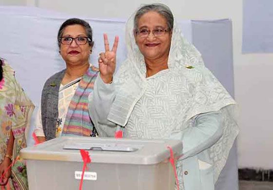 ප්රචණ්ඩ ක්රියා මධ්යයේ පැවති බංග්ලාදේශ මහ මැතිවරණයේ ජයග්රහණය අගමැතිනී ෂෙයික් හසීනාගේ නායකත්වයෙන් යුත් පාලක අවාමි ලීගයට හිමි විය.