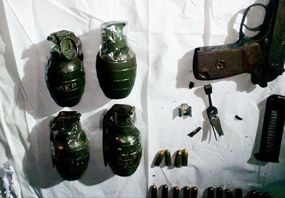 සැකකරු විසින් දමා ගිය බෑගයේ තිබී අත්බෝම්බ හතරක්, නවීන පන්නයේ මයික්රෝ පිස්තෝලයක්, මැගසින් එකක්, මිලිමීටර් 9 ජීවි පිස්තෝල උණ්ඩ 18ක් , මාලිමා යන්ත්රයක්, ජංගම දුරකතන දෙකක්, සෝල යන්ත්රයක්, හා කැලේ ජීවිත් වීමට හැකි වේදනානාශක බෙහෙත්පෙති, දත් බුරුසුවක්,දත් බෙහෙත් හා සරම් කිහිපයක් විවිධ වූ කෑම හා ඇඳුම් තොගයක් හමු වූ බවට පොලිසිය කියා සිටියේය.