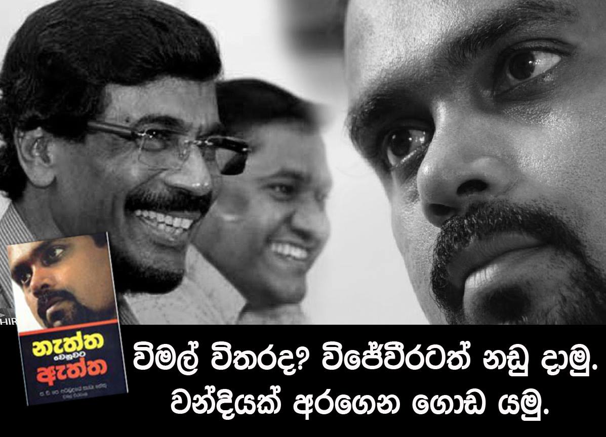 1. කහින, දෙහින, රිදුන අයට ඕනම නම් ලියපුව කියවන්න විකුනන්න බැරි පොත නිකන් දෙන්න පුලුවන්. තප්පුලන අයට ඕනනම් ලියපුව වැරදිනම් එලිපිට තර්කෙකට අපි සූදානම්. මතක තබාගන්න විමල් බේරාගැනීමට නොව රටක් ගොඩදාන්න තිබ්බ පක්ශෙ අදිරාජ්‍යවාදීන්ගේ ඒජන්තයගෙ හෙලුව වහන අමුඩෙ බවට පත්කරපු අනුර ප්‍රමුක නඩය ගැන අද ඉන්න ජවිපෙ හුජ්ජ කොල්ලො කෙල්ලන්ට කියල දෙන්න්.