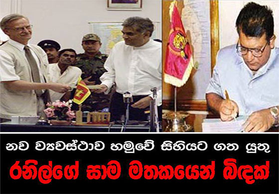 > 2002 පෙබරවාරි 22 වැනිදා පාර්ලිමේන්තුව, කැබිනට් මණ්ඩලය, ජනාධිපතිනිය ආදී සියලූ පාර්ශ්වයන්ට කරුණු සඟවමින් රනිල් වික්රමසිංහ තම තනි කැමැත්තට අනුව කොටි සංවිධානය සමඟ සටන් විරාම ගිවිසුමට අත්සන් තැබුවේය.