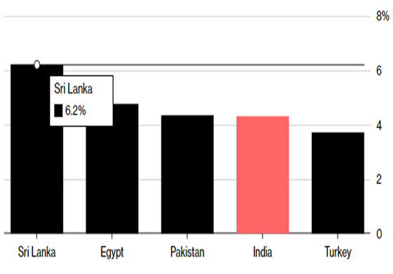 මෙහිදී 6.2% ක් ලෙසින් ශ්රී ලංකාවේ මූර්ත පොළී අනුපාතිකය සටහන්ව ඇති අතර පිළිවෙලින් ඊජිප්තුව (4.8%), පකිස්තානය (4.3%), ඉන්දියාව (4.3%) හා තුර්කිය (3.7%) සෙසු ස්ථාන 4 හි පසුවේ.