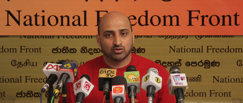 එජාප නායකයන් බැඳුම්කර හොරකමට අහු වුණාට පස්සේ දැන් කියනවා ‘2005 – 2014 කාලයේ සිදු වූ බැඳුම්කර සොරකම්වලින් රජයට බිලියන 4000ක් පාඩු වුණා’ කියා. ඉතා කුඩා සිද්ධීන් පාදක කරගනිමින් බොරු චෝදනා යටතේ අපව සිරගත කළ මේ ආණ්ඩුව එවැනි වංචාවක් වෙලා නම් අවුරුදු තුනක් නිකන් ඉදීවිද? හිටපු මහ බැංකු අධිපති අජිත් නිවාඞ් කබ්රාල් මහතා පවසා තිබුණා, ‘1997 සිට 2014 දක්වා වෙන්දේසි හා සෘජු ක්රමවල සම්මිශ්රණයක් ලෙසයි බැඳුම්කර ලබා දුන්නේ’ කියා. එහෙමනම් 1997 සිට සිදු වූ සියලු ගනුදෙනු විමර්ශනය කළ යුතුයි නේද? ඒ වගේම අජිත් නිවාඞ් කබ්රාල් මහතා අදත් ලංකාවේ ඉන්නවා. ඔහුගෙන් ඕනෑම අවස්ථාවක ප්රශ්න කළ හැකියි. නමුත් අද අර්ජුන් මහෙන්ද්රන් තමන්ගේ රටට, සිංගප්පූරු ගිහිල්ලා. මේ වගේ බොරු කතා කියමින් ජනතාව රවටන මේ යහපාලන හොරුන්ට පෙබරවාරි 10 වැනිදා හොඳ උත්තරයක් දිය යුතුයි නේද?”