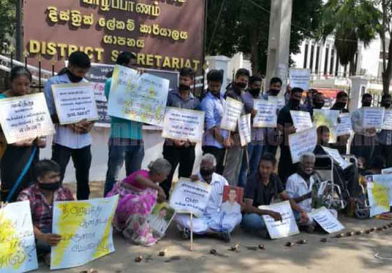 අතුරුදහන්වූවන් සොයාදෙන ලෙසට හා අතුරුදහන්වූවන් වෙනුවෙන් සිදුවුයේ කුමක්ද යන්න විමසමින් අතුරුදහන්වූවන්ගේ ඥාතීන් අද(09) යාපනය දිස්ත්රික් ලේකම් කාර්යාලය ඉදිරිපිට විරෝධතාවයක නිරතවිය.