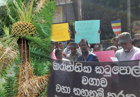 “විනාශකාරී කටුපොල් වගාවට එරෙහි ජාතික ව්යාපාරය සහ සොබාදහම සුරැකීමේ සංවිධානය” විසින් පෙබරවාරි 17 ඉරිදා එම විරෝධතාවය දියත් කර ඇත්තේ ගාල්ල පිටබැද්දර නගරයේදීය.