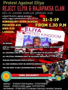 එමෙන්ම සම්මන්ත්රණය පැවැත්වෙන මාර්තු 31 දින එම ස්ථානයට පැමිණ දෙමළ ඩයස්පෝරාව විසින් උද්ඝෝෂණයක් කිරීමටද සැලසුම්කර පෝස්ටර් අලවා ඇතිබවද වාර්තාවේ.