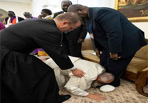 දකුණු සුඩානයේ පැවැති සිවිල් යුද්ධය අවසන් කරගනිමින් ඇති කරගන්නා ලද “සාම ගිවිසුමට” සහයෝගය දැක්වීමක් ලෙස අති උතුම් ශුද්ධෝත්තම ෆ්රැන්සිස් පාප්වහන්සේ ජනාධිපති සැල්වා කීර් මයාර්ඩිට්, උප ජනාධිපතිනි නියන්ග්ඩෙන්ග් ඩි මේබියෝර්, විපක්ෂ නායක රීක් මකාර් යන නායකයන්ගේ දෙපා සිප ගත්හ.