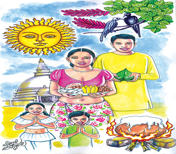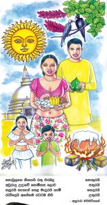 අපේ්රල් මස 14 වැනි ඉරිදා අපරභාග 02.42 ට රතු සහ කහ මිශ්ර (තඹ පැහැති* වර්ණ වස්ත්රාභරණයෙන් සැරසී නැෙඟනහිර දිසාව බලා ලිප් බැඳගිනි මොළවා හකුරු මිශ්ර කිරිබතක්ද කිතුල් මිශ්ර (ඉඟුරු, ගම්මිරිස්, තිප්පිලි යන කුළු බඩු දමා* අග්ගලා සහ කැවුම් පිළියෙල කර ගැනීම මැනවි.