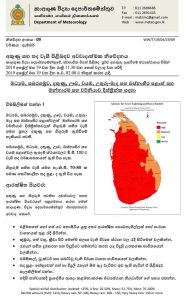 මධ්යම , සබරගමුව, දකුණු, ඌව, වයඹ, උතුරුමැද, හා බස්නාහිර පළාත්වලත් මන්නාරම හා වව්නියාව දිස්ත්රික්කවලත් ගිගුරුම් සහිත වැසි සමග ප්රභල අකුණු ඇතිවීවේ හැකියාවක් ඇති බව කාලගුණ විද්යා දෙපාර්තමේන්තුව නිකුත් කළ අවවාදාත්මක නිවේදනයක දැක්වෙයි.