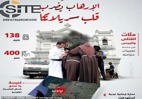 සිය සමාජ මාධ්ය ජාල ඔස්සේ ශ්රී ලංකාවේ සිදුවූ මරාගෙන මැරෙන බෝම්බ ප්රහාරයන්ට අදාළ ජයාරූප හුවමාරුකර ගනිමින් ඔවුන් මෙම ප්රහාරය නිසා ඉතා ප්රීතියට පත්ව සිටින බව දක්වමින් පණිවිඩ හුවමාරු කරගෙන තිබු බව මේ සම්බන්ධයෙන් විමර්ශනය කරන SITE නම් අන්තර්ජාල බුද්ධි ඒකකයේ අධ්යක්ෂිකා Rita Katz සඳහන් කරයි.
