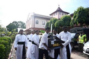 බෝම්බ පිපිරීමෙන් මියගිය බොහෝ දෙනාගේ අවමඟුල් අද පැවැත්වේ.සියලූම රජයේ ගොඩනැඟිලි සහ රාජ්ය ආයතන වල ජාතික කොඩිය අඩකුඹු කර ඇති අතර බෝම්බ ප්රහාරයෙන් මියගිය අයට ගෞරව කිරීම සඳහා පෙරවරු 8.30 සිට විනාඩි 3 ක නිහඬතාවක් පළකෙරිණ. මෙම නිහඬතාව පෙරවරු 8.30 ට ආරම්භ වූයේ ඉරිදා බෝම්බ පිපිරීම් ආරම්භ වූයේ ඊට ආසන්න වෙලාවකදී (පෙරවරු 8.45 ට) බැවිනි. පෙරවරු 8.30 වන විට පාස්කු දේව මෙහෙයට සහභාගි වෙමින් සිටි කතෝලික බැතිමත්හු දේවස්ථාන වල සිටියහ.පිපිරීම් මාලාවෙන් මියගිය අය වෙනුවෙන් අනුස්මරණ දේවමෙහෙය අද පෙරුවරුවේදී පැවැත්විණ.