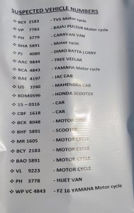 අදාල සැකකටයුතු වාහන විස්සෙහි අංක හා විස්තරද මහජනයා සඳහා අදාල මුරපොලවල්හි ප්රදර්ශනය කොට තිබේ.