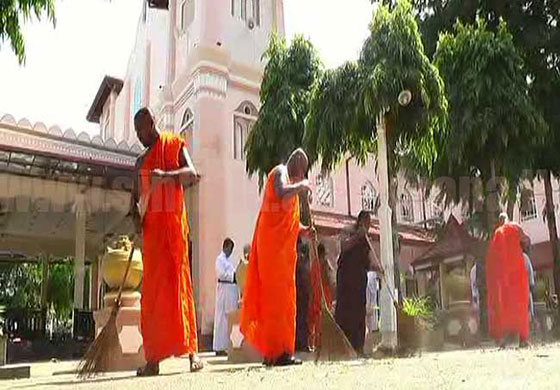 අනතුරුව භික්ෂුන් වහන්සේලා විසින් දේව්මැදුරේ පවිත්ර කිරීමේ කටයුතු වලද නිරත වුණි.