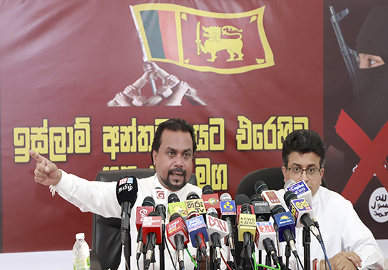 ‘අප හිතුවා මේ මොහොතේ අප පක්ෂ දෙකේ මතය ඒකාබද්ධව ඉදිරිපත් කිරීම වැදගත් කියා. අපේ අදහස පිළිගෙන කටයුතු කළ පිවිතුරු හෙළ උරුමයේ නායක උදය ගම්මන්පිල මහතාට පළමුව අපේ කෘතවේදීත්වය පළකර සිටිනවා. අද මේ රට තිබෙන්නේ ඉතාමත් තීරණාත්මක තැනක. ජීවිත 300ක් අහිමි වෙලා, මියගිය දරුවන් දෙස බලාගෙන අම්මාලා හඩනකොට, මියගිය පියවරු ලෙස බලාගෙන දරුවන් දුක් වන කොට ‘අපි ආරක්ෂිතයි’ කියා සතුටු විය හැකි නම් ඊට වඩා මිත්යාවක් තවත් නැහැ. රටේ ජනාධිපති කියනවා, ‘ත්රස්තයින් ඉන්නේ 150යි. එයිනුත් 80%ක් දැන් අල්ලලා ඉවරයි’ කියලා. රටේ හැමතැනම කඩු අහුවෙනවා. ඒවා පෙන්වීම වාරණය කරනවා. වහාබ්වාදී අන්තවාදයට යට වුණු මුස්ලිම් දේවස්ථානවලින් පවා කඩු හසුවෙනවා. මේ කඩු කවර මොහොතක හෝ අපේ ගෙල මතට පතිත විය හැකියි. සාමකාමීව ජීවත් වීමට කැමති සිංහල, දෙමළ, මුස්ලිම්, බෞද්ධ, කිතුණු, ඉස්ලාම් ජනතාවගේ ගෙල මතට කවර මොහොතක හෝ මේවා පතිත විය හැකියි. ඒ පතිත වන දිනය පමණයි අපට නොතේරෙන්නේ.