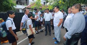ඒ අනුව මහින්ද රාජපක්ෂ මහතාද පුද්ගලිකවම මැදිහත් වෙමින් අද පෙරවරුවේ කොළඹ හා ඒ අවට පිහිටි තර්ස්ටන්, රාජකීය, විශාකා, හින්දු විද්යාලය, ආනන්ද, නාලන්ද, ගෝතමී යන පාසල්වලට ගොස් පාසල් ළමුන්, දෙමාපියන්, ගුරුවරුන් හා විදුහල්පතිවරුන් හා ආරක්ෂක නිලධාරීන් සමඟ අදහස් හුවමාරු කර ගනිමින් පාසල් හා ඒ අවට ආරක්ෂක තත්වයන් සොයා බැලීමට කටයුතු කළේය.