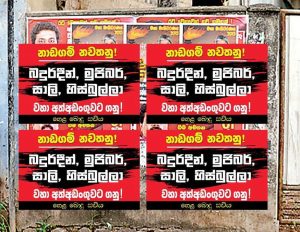 නමුත් මේ වන විට ඒ කිසිවකු අස් කොට නොමැති අතර කොමිසම්ක් ද පත් කොට නැත. සිදුවී ඇත්තේ තිදෙනාගෙන් දෙදෙනෙකු ඉල්ලා අස්වීම පමණි. ඊයේ රාත්රියේ කොළඹ නගරයේ අලවා තිබූ පෝස්ටර් තුළින් ඔවුන් සියලු දෙනා අත්අඩංගුවට ගන්නා ලෙස බල කර ඇත.