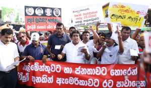 ‘පාස්කු දින ප්රහාරයේ ලේ තැවරුණු රිෂාඞ් – සාලි – හිස්බුල්ලා – මුජිබර් අත්අඩංගුවට ගනු!’ යන තේමාව යටතේ ජාතික නිදහස් පෙරමුණ රට පුරා නගර රැසක පවත්වනු ලබන උද්ඝෝෂණ මාලාවේ පළමුවැන්න අද (09) සවස කළුතර බස් නැවතුම ඉදිරිපිට දී පා.ම. ජයන්ත සමරවීර මහතාගේ ප්රධානත්වයෙන් පැවැති අතර ඊට පළාත් පාලන මන්ත්රීවරු ඇතුළු ජානිපෙ ක්රියාකාරීහු රැසක් එක්ව සිටියහ.