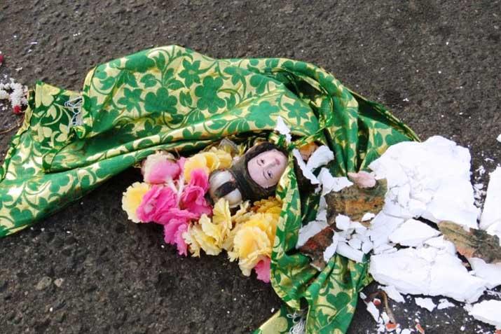 මණයම්තොට්ටම් මන්සන්ධියේ අදාළ කිතුණු දේව ප්රතිමාව ඉදිකොට තිබූ අතර අද අලුයම එම ස්ථානයෙන් ගමන්ගත් ධීවරයින් පිරිසක් විසින් අදාළ ප්රතිමාව කඩා විනාශ කර ඇති අයුරු දැක ඒ බව පොලීසියට දැනුම් දී ඇත.
