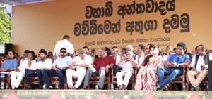 5. සදාදරණීය ලක් මාතාවගේ සුජාත දූ පුතුන් වන සිංහල, දෙමළ, මුස්ලිම් යන දූ පුතුන් රුධිරමය හතුරන් කොට එකිනෙකා මරා ගැනීමට සලස්වන ලක් පොළොව ආසියාවේ ලිබියාවක්, ඉරාකයක් බවට පත් කිරීමට තතනන මිලේච්ඡ වහාබ්වාදය හදා, වඩා, ලොකු මහත්කොට, රැකවරණය ලබා දෙන රිෂාඩ් බදුර්දීන් – අසාත් සාලි – එම්.එල්.ඒ.එම් හිස්බුල්ලා හා රාවුෆ් හකීම් යන අයවලුන් ලාංකීය ජාතියේත්, උතුම් වූ ලාංකීය භූමියේත් පරම සතුරන් හා ද්රෝහීන් බවට හඳුන්වනු ලබන මෙකී ඓතිහාසික ජන රැලිය ඔවුන් සම්බන්ධ වන ආණ්ඩුවක් හෝ කවර ආකාරයක පාලන තන්ත්රයක් යළිත් කිසි දිනෙක ශ්රී ලංකාව තුළ පිහිටුවීමට ඉඩ නොතබන බවට ලක් මාතාවගේ නාමයෙන් අප සපත කර සිටිමු.