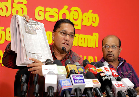 ඒ පැලවත්ත බත්තරමුල්ල හි පිහිට ජනතා විමුක්ති පෙරමුණේ ප්රධාන කාර්යාලයේ අද (22) පෙරවරුවේ පැවති මාධ්ය හමුවක් අමතමිණි.