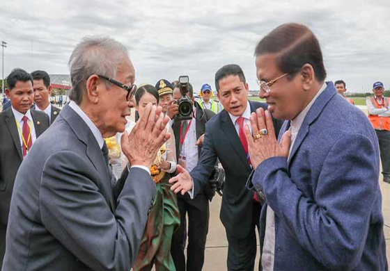 සිය සිවුදින නිල කාම්බෝජ සංචාරය ආරම්භ කරමින් ජනපති මෛත්රීපාල සිරිසේන මහතා ඇතුළු දූත පිරිස කාම්බෝජයේ පොනාම් පේ ගුවන් තොටුපොළින් එරටට ළඟා විය.