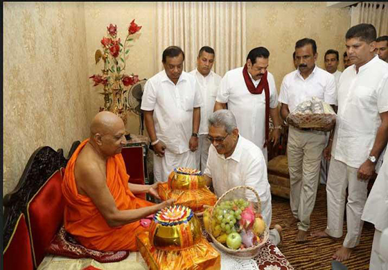 අද පෙරවරුවේ ශී්ර දළදා වහන්සේ වැඳපුදා ආශිර්වාද ලබා ගැනීමෙන් අනතුරුව මහින්ද රාජපක්ෂ මහතා සහ ගෝඨාභය රාජපක්ෂ මහතා සියම් මහා නිකායේ මල්වතු පාර්ශ්වයේ මහානායක අතිපූජ්ය තිබ්බටුවාවේ සිද්ධාර්ථ සුමංගල නාහිමි බැහැදැක ආශිර්වාදය ලබා ගත් අතර එහිදී ජාතික ආරක්ෂාව සම්බන්ධයෙන් ප්රශ්නයක් උද්ගතව ඇති බවත් ඒ සම්බන්ධයෙන් නිසි පියවර ගැනීමේ හැකියාව ඇත්තේ ගෝඨාභය රාජපක්ෂ මහතාට පමණක් බවත් මල්වතු පාර්ශ්වයේ මහානායකහිමියෝ පෙන්වා දුන්හ.
