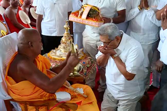 ගෝඨාභය රාජපක්ෂ මහතා අද පස්වරුවේ ශ්රී ජයවර්ධනපුර කෝට්ටේ රජමහා විහාරය වෙත පැමිණියේය.