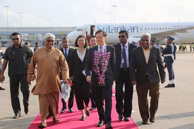 මහජන චීන සමූහාණ්ඩුවේ කොමියුනිස්ට් පක්ෂයේ දේශපාලන මණ්ඩලයේ සාමාජික (Chen Min’er ) චෙන් මයිනර් මහතා ඇතුළු තවත් 17 දෙනෙකුගෙන් සමන්විත එරට ඉහළ පෙළේ රාජ්ය දූත පිරිසක් දින තුනක නිල සංචාරයක් සදහා අද (17) සවස කටුනායක ගුවන් තොටුපළ ඔස්සේ ශ්රී ලංකාවට පැමිණි ඇත.