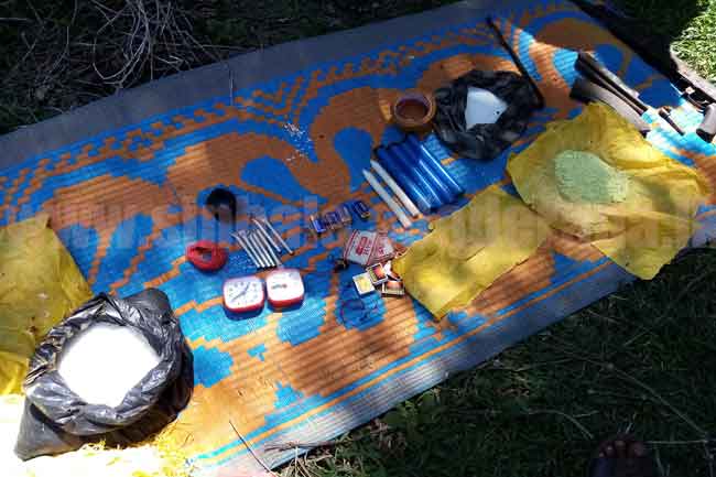 ඩෙටනේටර් 7ක්, ජෙලට්නයිට් කුරූ 4 ක්, වයර්, ඇමෝනියා, යුරියා, ඇතුළු භාණ්ඩ කීපයක් ද සොයා ගැණුන භාණ්ඩ අතර වෙයි.