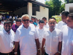 දුමින්ද දිසානායක මහතා මහත් හරසරින් ජනාධිපති අපේක්ෂක ගෝඨාභය රාජපක්ෂ මහතා පිළිගත් අතර, ගෝඨාභය රාජපක්ෂ මහතා හා දුමින්ද දිසානායක මහතා සුහද පිළිසදරක නිරතව ඇත.