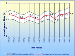 තවද 2019 පළමු කාර්තුවේ දී 4.7%ක්ව පැවති විරැකියා අනුපාතිකය 2019 දෙවන කාර්තුව වන විට 4.9%ක් දක්වා වැඩි වී ඇත.