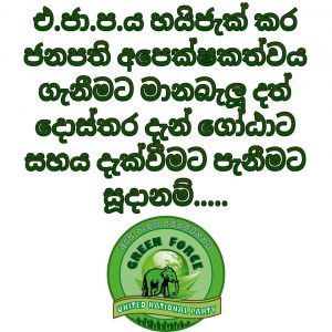 ගෝඨාභය රාජපක්ෂ මහතාට සහාය දැක්වීම සදහා දත් දොස්තර පනින්න සූදානම් බව එක්සත් ජාතික පක්ෂ ජනාධිපති අපේක්ෂක සජිත් පේ්රමදාස මහතාට හිතවාදී සමාජ ජාලා පිටු විසින් වාර්තා කර ඇත.