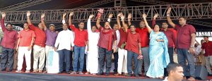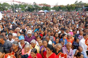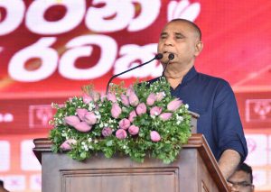 වැහි කාල ගුණයක් තිබියදිත් අපිට ශක්තියක් වන්න මේ රැළියට සහභාගි වන දේශප්රේමී ජනතාවට ස්තූතියි. මේ රටේ තිබුණූ ත්රස්තවාදය මහින්ද රාජපක්ෂ ජනාධිපතිතුමාගේ නායකත්වයෙන් අවසන් කරලා නැවතත් එවැනි තත්ත්වයක් පැන නොනගින ලෙස ආරක්ෂිත වැඩපිළීවෙලක් යෙදුවා. ඒ නිසා එවැනි ත්රස්තවාදයක් වසර 10 කාලයක් හිස එසවූයේ නැහැ. ඔබ ත්රස්තවාදයෙන් බැට කාපු වීරෝධාර ලෙස ත්රස්තවාදයට මුහුණ දුන් ජනතාවක්. මේ පළාත් පොලීසියට ත්රිවිද හමුදාවට හා සිවිල් ආරක්ෂක බලකායට මේ ප්රදේශවලින් සෑහෙන පිරිසක් එක් වුනා. එදා අපේ රජය යටතේ ඔවුන්ට අබිමානයක් ගෙනාවා. අපේ රජය යටතේ පොලිස් නිලධාරින් වැඩි කළා. ත්රිවිද හමුදා නිලධාරින් ප්රමාණය වැඩි කළා. ගම් බට්ටෝ කියපු අයට පුහුණුවක් දීලා නිල ඇදුමක් දීලා සිවිල් ආරක්ෂක බලකාය ඇති කරලා අභිමානයක් ලබා දුන්නා. එදා හදිසියේ හමුදාවට 4000ක අවහ්යතාවයක් ඇති වුනා. අලුතනේ බදවා ගෙන පුහුණු කරන්න අවස්ථාවක් නැති නිසා අපි සිවිල් ආරක්ෂක බලකායේ අයට කැමැත්තෙන් ඉදිරිපත් වෙන්න කිව්වා. ඔවුන් තමයි අවසන් කාලයේ යුද්ධයට එක් වුනේ.