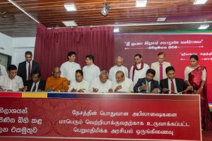 මෙහිදි සන්ධානගතව පක්ෂ නායකයින් ගිවිසුමට අස්සන් තැබු අතර පසුව එය පක්ෂ ලේකම්වරුන් වෙත ලබා දුන්නේය.