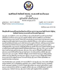 කොළඹ ඇමෙරිකානු තානාපති කාර්යාලය නිකුත් කළ නිවේදනයේ මෙසේ ද දැක්වේ.