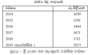 රාජ්ය බදු ආදායම ගත් විට වර්ෂ 2014 වසරේ සිට වර්ෂ 2018 දක්වා කාලයේදී රජය අය කරන බදු විශාල වශයෙන් වැඩිවීමක් සිදුව තිබේ. එනම් මහජනයාගේ බදු බර සැලකිය යුතු ලෙස ඉහළ ගොස් ඇති බවයි. රාජ්ය බදු ආදායම් ඉහළ නංවා ගැනීම හොඳ දෙයක් නමුත් රටේ ආර්ථික තත්ත්වය අනුව මෙසේ මහජනයාගේ බදු බර ඉහළ යෑම නිසා ඔවුන්ට විශාල පීඩනයක් ඇති වන බව අමුතුවෙන් කිව යුතු නොවේ. වැඩි කර ගත් බදු ආදායම තුළ වැඩි වශයෙන්ම ඇත්තේ වක්ර බදු නිසා අති මහත් බහුතර පොදු ජනයා වෙත යහපාලන රජය විසින් වැඩි බරක් පටවා තිබේ. එය සිදුව ඇති අයුරු අපට මෙසේ විස්තර කළ හැකිය. මේ කාලයේදී මුළු රජයේ බදු ආදායම රු.බිලියන 1,050 සිට රු.බිලියන 1,712 දක්වා ඉහළ ගොස් තිබේ. එසේම 2019 වර්ෂයේදී රුපියල්් බිලියන 2077 දක්වා රාජ්ය බදු ආදායම ඉහළ නංවා ගැනීමට ද රජය ඉලක්ක කර තිබේ. මේ අනුව වර්ෂ 2014 දී පැවති රුපියල් බිලියන 1050 ක බදු ආදායමට සාපේක්ෂව ජනතාවගේ බදු බර මේ වසර කිහිපයේදී දෙගුණයකින් පමණ ඉහළ ගොස් තිබේ. රජයට වැඩි බදු ආදායමක් උපයා ගැනීමට නම් රටේ ආර්ථික තත්ත්වය ද හොඳ විය යුතුය. එහෙත් පසුගිය වසර හතරහමාරක කාලයේදී රටේ ආර්ථික තත්ත්වය දිගින් දිගටම අහිතකර වූ බවත් පාස්කු ඉරිදා ත්රස්ත ප්රහාරයෙන් පසු රටේ ආර්ථික කටයුතු බෙහෙවින් අකර්මණ්ය වූ බවත් අප සැම දන්නා කරුණකි.