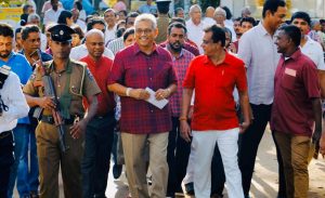 ඒ අනුව ශ්රී ලංකා පොදුජන පෙරමුණේ ජනාධිපතිධුර අපේක්ෂක ගෝඨාභය රාජපක්ෂ මහතා නුගේගොඩ ශ්රී විවේකාරාම විහාරස්ථානයේ ඡන්ද මධ්යස්ථානයේදී අද(16) උදෑසන 08.00ට පමණ සිය ඡන්දය ප්රකාශ කළේය.